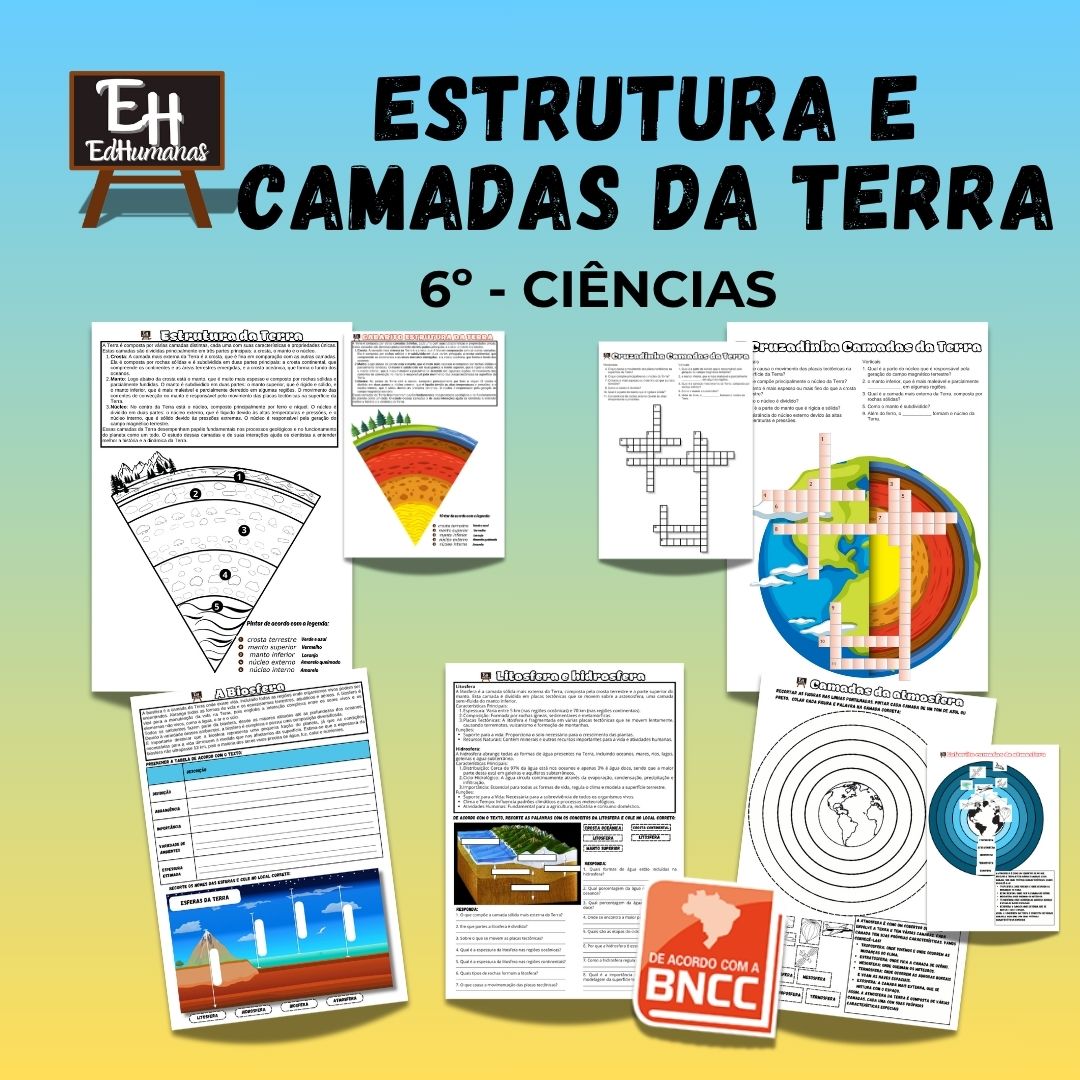 Kit de ciências Estrutura e camadas da Terra com textos simples e atividades dinâmicas e interativas.