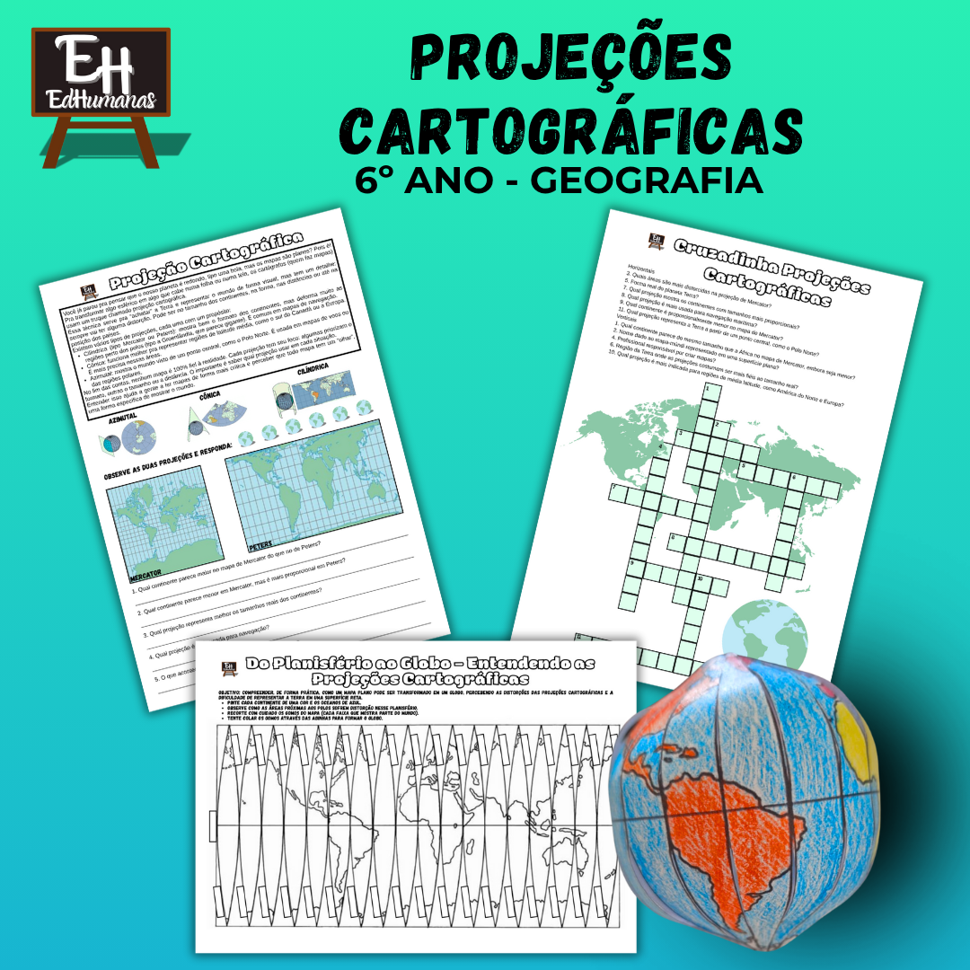Kit Projeções Cartográficas com textos e atividades dinâmicas e interativas